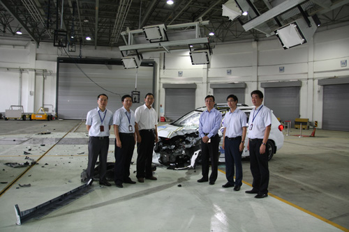 朱进元一行先后参观了中国汽研公司陈列室,汽车安全技术中心,NVH试验室,EMC试验室,智能车试验场等试验场所 性巴克,随后与中国汽研董事长任晓常,总经理李开国等进行了座谈交流,双方就汽车安全共同研究,安全试验标准,披露发布及公众宣传等方面交换了意见,并就深入合作进行了探讨交流。