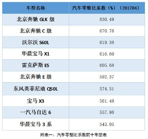 汽车零整比系数方面,通过公开市场采集各车型的配件价格(价格数据截至到3月),导入计算公式核算各车型的汽车零整比系数。在样本车型中最高的车型为北京奔驰GLK级,汽车零整比系数为830 性巴克下载,49%;最低的车型为力帆620,汽车零整比系数为157,66%。。