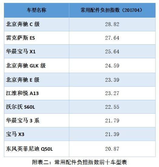 常用配件负担指数方面,在汽车零整比系数基础上,挖掘事故车维修数据,选取配件损失率大于1%的常用配件进行研究,导入计算公式核算各车型的常用配件负担指数。在样本车型中最高的车型为北京奔驰C级,常用配件负担指数为28,82;最低的车型为哈弗H6,常用配件负担指数为9,32。 性巴克在线观看。