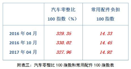 通过对往期数据回溯分析发现,一方面,部分样本车型汽车零整比系数小幅上涨的同时,常用配件负担指数涨幅较大,例如东风悦达起亚K2车型,汽车零整比系数同比上涨幅度7,14%,常用配件负担指数同比上涨幅度则为26,96%。另一方面,部分样本车型汽车零整比系数下降,常用配件负担指数反而上涨,例如东风标致3008车型,汽车零整比系数同比下降幅度-0,63%,常用配件负担指数同比上涨幅度为1 性巴克在线,49%。。
